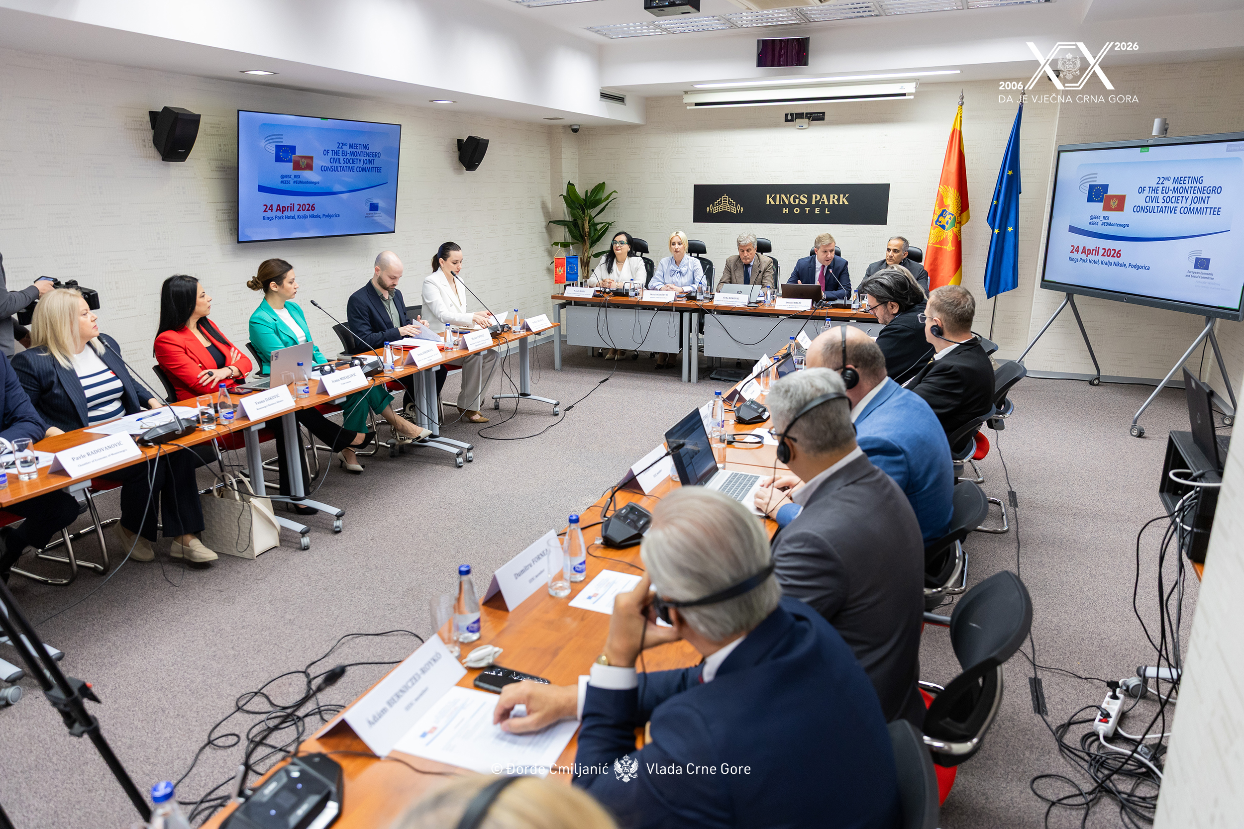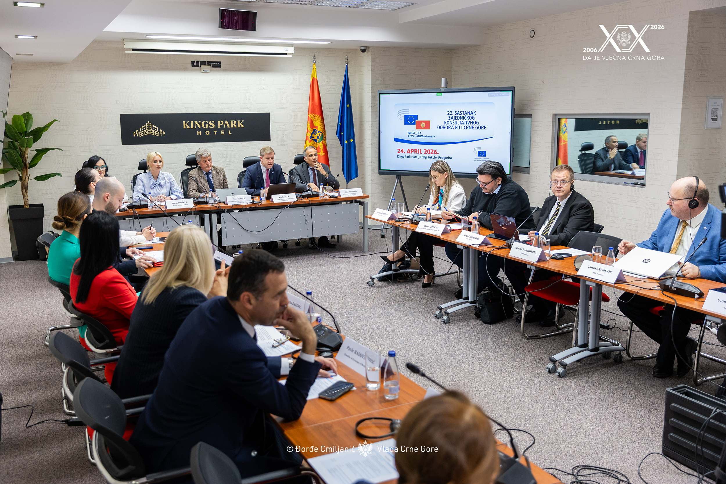 Dvadeset i drugi sastanak Zajedničkog konsultativnog odbora između EU i Crne Gore (ZKO), održava se danas u Podgorici.